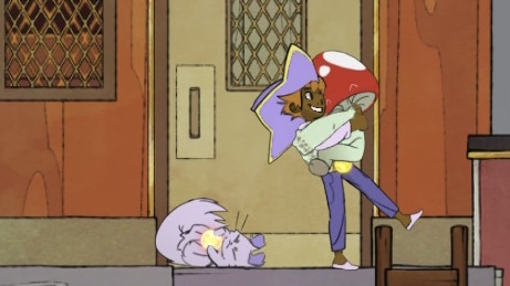 还有就是小蘑菇。小蘑菇实在是太可爱!!叫我大帽子,心情到了最开心那一格会跟着你跑来跑去,你和他对话就说“想成为一个优秀的船长,所以我要跟着你”;和他拥抱的时候他会跳上来紧紧抱住你,可爱可爱可爱可爱!!