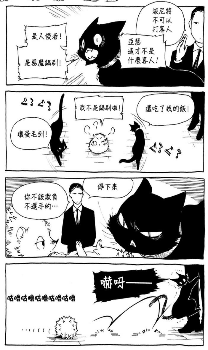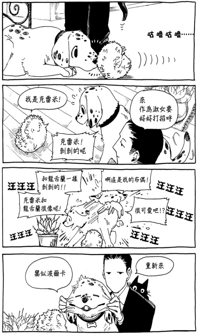 Y推荐给我的一本。只有三册,很短,看起来没负担,画风和剧情都很治愈,是所有动物爱好者都会感到很幸福的一本漫画(蜗牛爱好者可能除外……)。主要讲的就是戴上神奇尾戒就可以听懂动物讲话的人类亚瑟与他的斑点狗波尔卡、小黑猫波尼特以及一只跑进他家里的刺猬克雷米(还有一盆龙舌兰)的生活,期间还会出场很多小妖精。